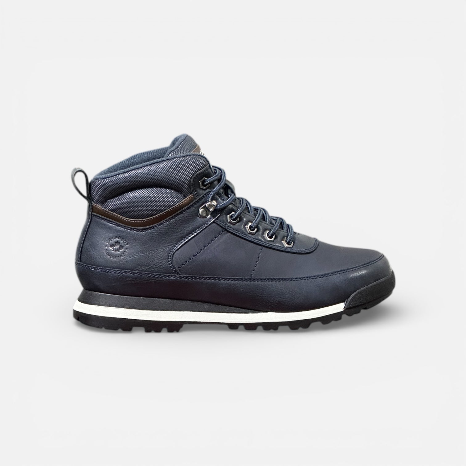 Scarpa mid-cut dal carattere urbano e deciso, perfetta quando vuoi un look più strutturato senza rinunciare alla versatilità. La silhouette pulita in blu navy è valorizzata dai dettagli metallici e dal collarino imbottito, pensato per offrire una sensazione comoda e stabile durante tutta la giornata. La suola con grip completa il design con un’impronta solida e contemporanea.